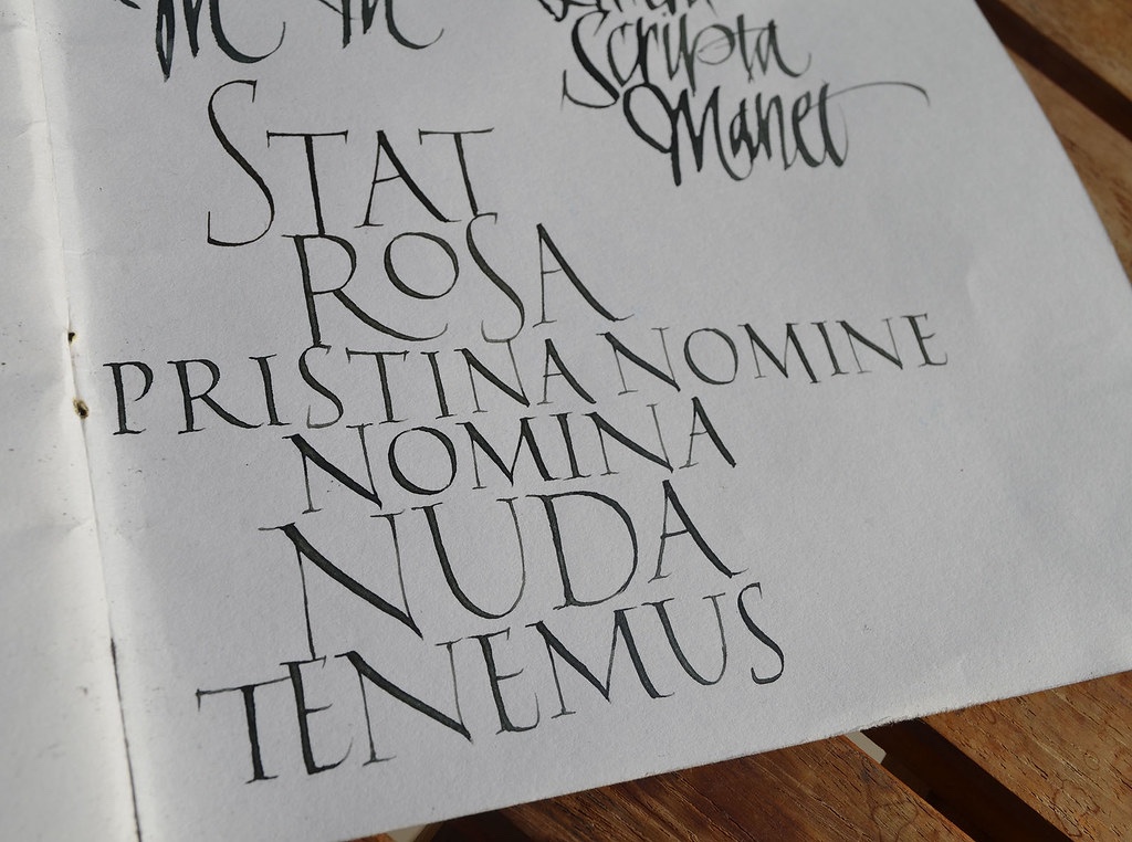 “Stat rosa pristina nomine nomina tenemus”. “la rosa primigenia esiste solo nel nome, possediamo soltanto nudi nomi”. Questa frase è di Bernardo de Cluny, usata in tempi “moderni”per concludere il libro “in nome della rosa” di Umberto Eco.