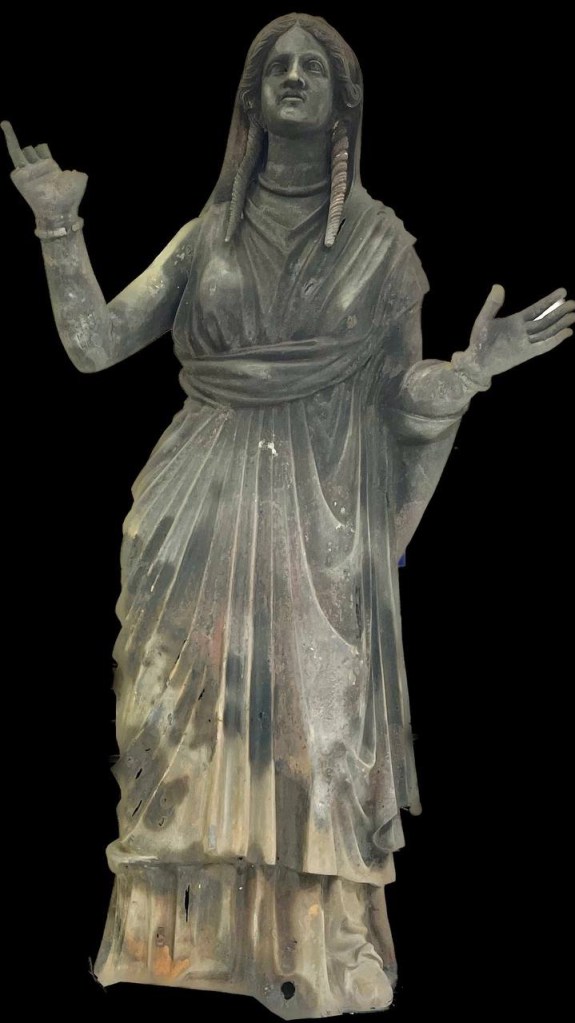 Il santuario, con le sue piscine ribollenti, le terrazze digradanti, le fontane, gli altari, esisteva almeno dal III secolo a.C. e rimase attivo fino al V d.C. quando, in epoca cristiana, venne chiuso ma non distrutto. Le vasche furono sigillate con pesanti colonne di pietra, le divinità affidate con rispetto all’acqua. È anche per questo che, rimossa quella copertura, gli archeologi si sono trovati davanti un tesoro ancora intatto, di fatto “il più grande deposito di statue dell’Italia antica e comunque l’unico di cui abbiamo la possibilità di ricostruire interamente il contesto”.