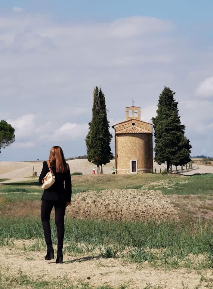 Le vecchie strade si snodano dietro i profili aggraziati delle colline ondulate, ciottoli di pietra, cipressi sentinella si ergono severi come colonne di marmo basate su radici intrecciate da millenni. Cammino per le valli, osservo in lontananza la maestosità delle torri di San Gimignano, gli echi delle guerre e del sangue sparso tra Guelfi e Ghibellini ancora risuona nella natura che ne fu testimone. Arrivo davanti all’Abbazia di San Galgano, il luogo che conserva la spada nella roccia, ferro e pietra uniti nei secoli, storie e leggende di un Galgano realmente esistito e di un Artù immaginario; il primo che conficca la spada nella pietra quale gesto di conversione ai suoi infiniti peccati umani, e il secondo che la estrae come il predestinato a instaurare un regno di giustizia. Solo allora mi accorgo che accanto a me c’è una bambina di circa sette anni, mi guarda e mi sorride, ha qualcosa di magnetico nello sguardo, sembra conoscere il “segreto” che è nell’etere che ci circonda. Sì, lo chiamo “segreto”, appartiene ai bambini che una volta divenuti adulti:dimenticano. Perdono la magia di meravigliarsi, lo stupore, ,la curiosità di scoprire dove ancora viva la loro parte fanciulla, che è tremendamente impaurita dal nostro abbandono. Continuo a camminare lungo la via Francigena, quanti uomini hanno percorso la strada in cerca di se stessi e di quel ponte tra una realtà spesso illusoria e un sogno veritiero. Lo sguardo di quella bambina, incontrata poco prima, mi crea un un perfetto ritmo sincronizzato come un alfabeto morse.. Mi inginocchio per toccare la terra è dura ed arida, ma tra le mie dita scivola via come polvere alla quale so di appartenere da millenni, respiro l’aria ed osservo la vegetazione che mi circonda. Non sono diversa da lei, se non nella presunzione di essere. Noi assorbiamo le caratteristiche della terra che ci ospita la quale è in grado di rimettere ordine e ricollocarci nel giusto posto dell’Universo.