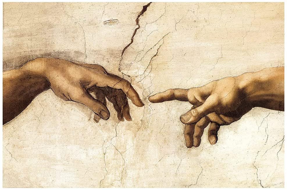 La Creazione di Adamo di Michelangelo nella Cappella Sistina. Il dito teso di Dio verso Adamo/genere umano, rappresenta che Lui è lì e la decisione di stare o meno dalla sua parte dipende dall’uomo