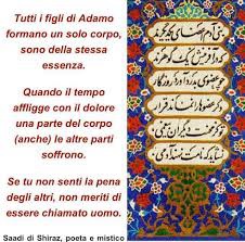 “Tutti i figli di Adamo formano un solo corpo, sono della stessa essenza. Quando il tempo affligge con il dolore una parte del corpo anche le altre parti soffrono. Se tu non senti la pena degli altri, non meriti di essere chiamato uomo”. ( Saādi di Shiraz, poeta iraniano del XIII secolo)