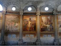 Questa chiesa è quindi senza spazio e senza tempo, è qualcosa di vicino a Dio; è anzi la promessa della venuta di Dio sulla terra. Ecco perché non è stata costruita così come la vede Giovanni nell’Apocalisse, è l’ultimo atto della volontà divina. Il cubo si trasforma in sfera: il cerchio all’interno del quadrato è la “scintilla” divina nell’involucro della materia. Questa chiesa, che affonda le sue basi su terreni che conobbero altri culti ed onorarono altre divinità, è orientata nel tempo e nello spazio ma essa stessa è senza tempo e senza spazio, è l’antico patto tra Dio e l’uomo, è la promessa della salvezza che scaturirà dall’apocalisse. L’apocalisse appartiene al genere della letteratura di rivelazione, dove, direttamente ispirata dalle divinità, per tramite di una visione, arriva un messaggio doppiamente occultato e Ri-velato, due volte, un aspetto allegorico ed exoterico, l’altro, esoterico, è riservato ad un ristretto numero di persone che scendono nelle profondità dei misteri. Il messaggio avverte dell’imminente venuta dell’ora del giudizio, dell’avvento delle Tenebre e della conclusione di un processo dovuto all’allontanarsi dell’uomo da Dio e dalla Verità. il Giudizio si accompagnerà con la resurrezione dei corpi e con la discesa dal cielo della Gerusalemme Celeste, intesa come recupero di quel Paradiso Terrestre perduto. Pertanto il ricevimento della Grazia è da un lato recezione passiva dell’influsso spirituale, dall’altro è la ricerca interiore, attiva, che renderà effettivo ciò che viene trasmesso in modalità simbolica con la ricerca e la trasformazione. Stefano ha saputo leggere quei segni nascosti e li ha interpretati nella giusta misura. A noi non resta che rimanere stupiti di fronte al messaggio che antichi maestri hanno saputo tracciare trasformando la pietra da grezza a levigata: quanti di questi messaggi sono sotto i nostri occhi? E quanti di questi messaggi, non solo non sappiamo più coglierne il significato profondo, ma li denigriamo perché incapaci di comprenderli. Attualmente la Chiesa di Santo Stefano Rotondo è in fase di decadenza, le antiche mura non fanno sospettare che al suo interno vi siano tesori inestimabili. Sembra quasi che le parole di Giovanni prendano qui corpo: non siamo più in grado di leggere, di ascoltare la parola divina, di misurare con i numeri sacri, di vedere quanto ci è stato tramandato con la pietra. Solo pochi hanno questa capacità: la loro condizione è quella della “veglia in armi” dei Templari che dotati di due spade sono pronti al duplice combattimento “contro la carne e il sangue e contro gli spiriti di malizia diffusi nell’aria”, così come dice San Bernardo. “I custodi del Tempio eressero molte loro Chiese rotonde, come il Santo Sepolcro e come Santo Stefano.