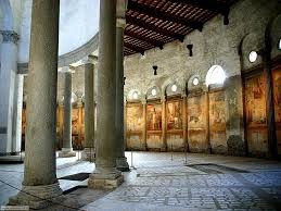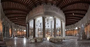 Lo stesso Diocleziano era nel contempo un fedele del dio Mithra al quale eresse un tempio nel 307 elevandolo al ruolo di protettore personale del suo potere. Il Mithraismo a Roma assunse carattere di religione misterica; i riti si svolgevano nei Mitrei, costruzioni sotterranee a forma di grotta simboleggianti il cielo, costituite da una sala centrale rettangolare e da un altare posto in una nicchia in cui era raffigurato l’episodio principale della vicenda del dio: l’uccisione del toro primordiale, con significato cosmogonico e salvifico. L’iniziazione mitraica comprendeva sette gradi e il momento centrale della liturgia mitraica era la consumazione da parte degli iniziati del pasto sacro. Sul monte Celio venne edificato un importante Mitreo annesso ai Castra Peregrini, caserma/fortezza in cui alloggiavano le milizie straniere. Solo nel 312 d.C., con Costantino, ci fu il trionfo del Cristianesimo sulle altre religioni praticate a Roma. In Occidente S.Agostino si fece propagatore del culto di S.Stefano e Papa Simplicio da Tivoli fece edificare la Chiesa di santo Stefano Rotondo al Celio. Siamo nel V secolo: nel 476, con la deposizione di Romolo Augustolo da parte di Odoacre scompare anche l’ultima traccia della potenza della Roma imperiale; già nel 395, con la morte di Teodosio l’Impero era stato diviso in due; gli Unni di Attila distruggono Aquileia nel 452 e tre anni dopo Roma subisce il sacco da parte dei Vandali di Genserico.