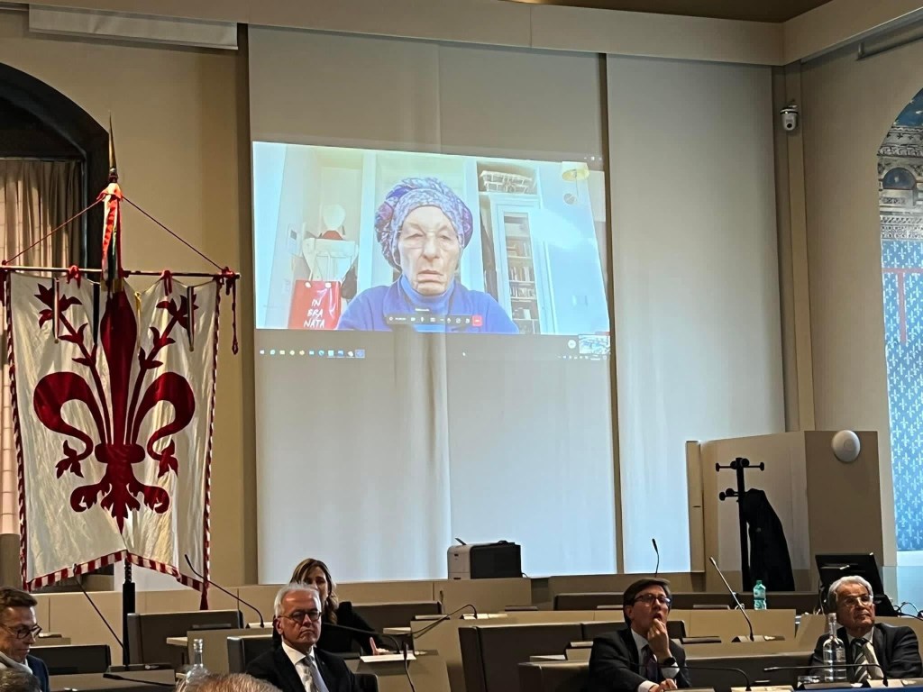 La colomba segno di pace con l’Ulivo sigillo del Comune di Firenze dal 1429 al 1530, e fatto riconiare dal Sindaco Giorgio Morales, negli anni 90, in metallo prezioso da un’antica e preziosa bottega artigiana della città a cura di un Maestro di arte orafa quale Paolo Penko